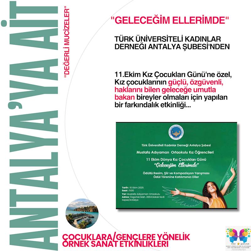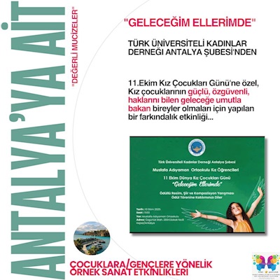 "ANTALYA'YA AİT-"DEĞERLİ MUCİZELER" DE İLK KONUK ÜNİVERSİTELİ KADINLER DERNEĞİ'nin değerli 11 Ekim Kız Çocukları Gününe özel projesi...bu yıl 4.sü Kepez Mustafa Adıyaman Ortaokulu kız çocukları arasında düzenlenen resim, şiir, kompozisyon yarışması sonuçland