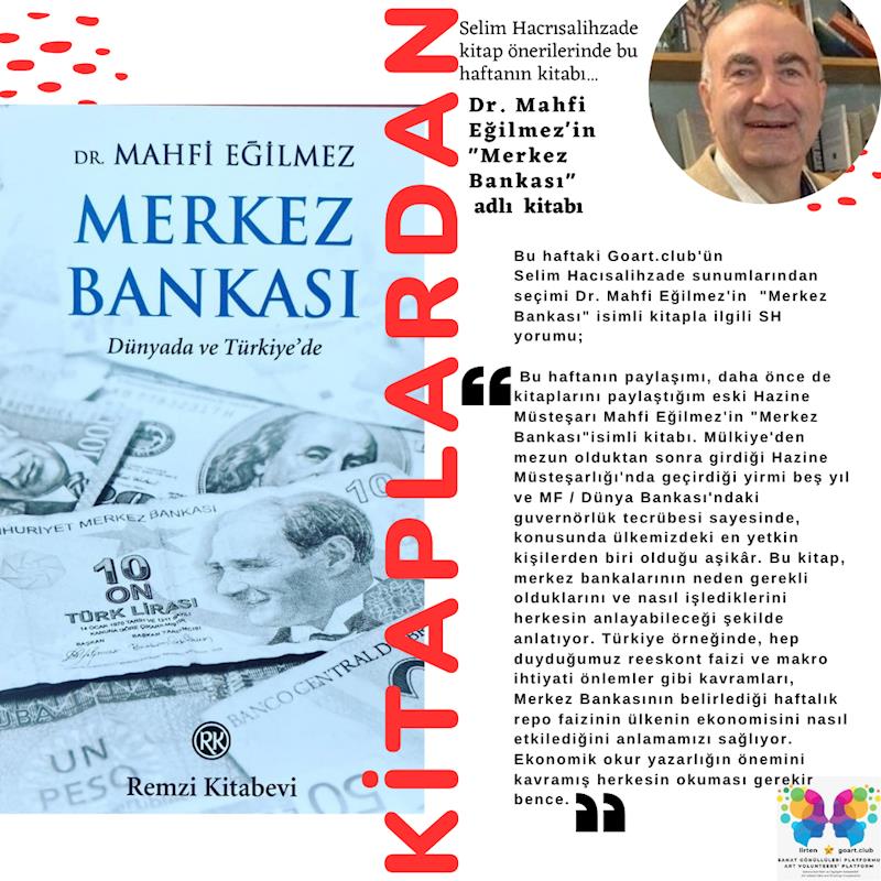 Bu haftanın paylaşımı, daha önce de kitaplarını paylaştığım eski Hazine Müsteşarı Mahfi Eğilmez'in "Merkez Bankası"isimli kitabı. Mülkiye'den mezun olduktan sonra girdiği Hazine Müsteşarlığı'nda geçirdiği yirmi beş yıl ve MF / Dünya Bankası'ndaki guvernörlük tecrübesi sayesinde, konusunda ülkemizdeki en yetkin kişilerden biri olduğu aşikâr. Bu kitap, merkez bankalarının neden gerekli olduklarını ve nasıl işlediklerini herkesin anlayabileceği şekilde anlatıyor. Türkiye örneğinde, hep
